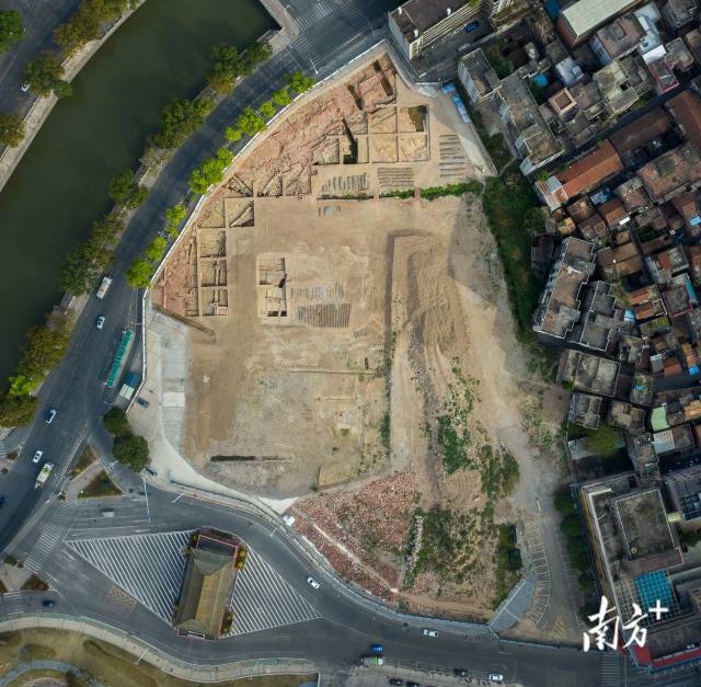 南海卫城墙遗址发掘全景图。